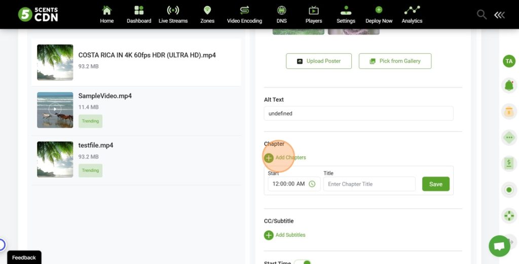 - In the Videos section, select the video you want to add chapters to.